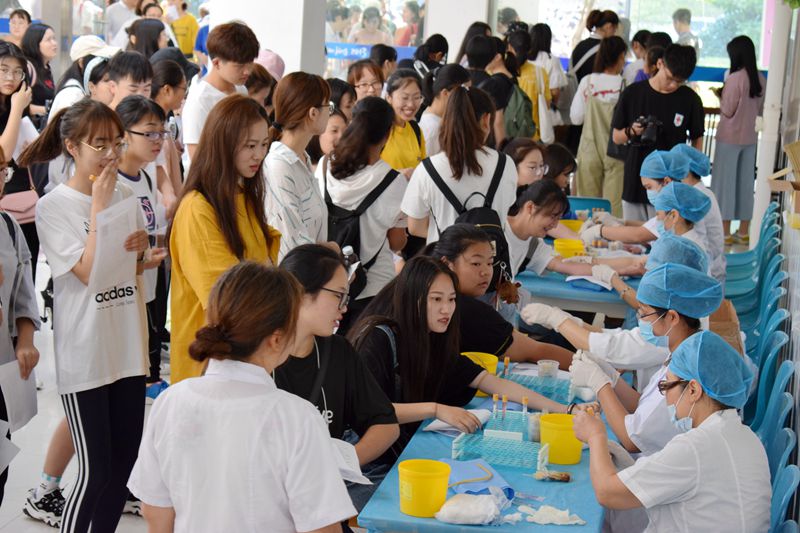 此次体检面临着体检人数多、时间短、要求高、工作人员紧张的重重困难,为此,校医院提前反复修订体检方案,多方联系退休职工和外院专业人员,同时与校红十字会协调配合,在体检期间安排200余人次的志愿者现场辅助,极大地缓解了工作人员压力,保障了体检工作的有序进行。为了全面掌握新生的健康状况,今年的体检项目新增加了体重指数统计和外科检查,护理组使用真空负压管抽血,检验科当天完成血生化检验,医院领导班子成员每晚加班加点出具体检结论。