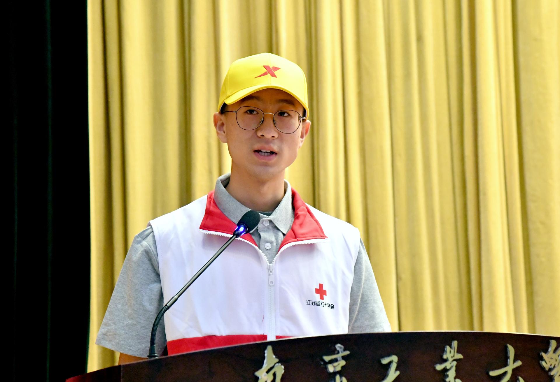 会上,聂城部长宣读表彰决定,张杰副会长、牛生杰副校长为祁玉清老师颁发“江苏省五一劳动奖章”等奖项。之后,朱兴同老师介绍了我校师生连续4年为南京马拉松提供医疗保障志愿服务的情况。随后,志愿者代表徐永杰同学进行发言,向志愿者们分享了以往南京马拉松医疗保障经历与切身体会。紧接着,张杰副会长向南京市红十字会应急救援志愿服务队南京工业大学支队授旗,支队队长雅鹏接旗并带领志愿者进行庄严宣誓。