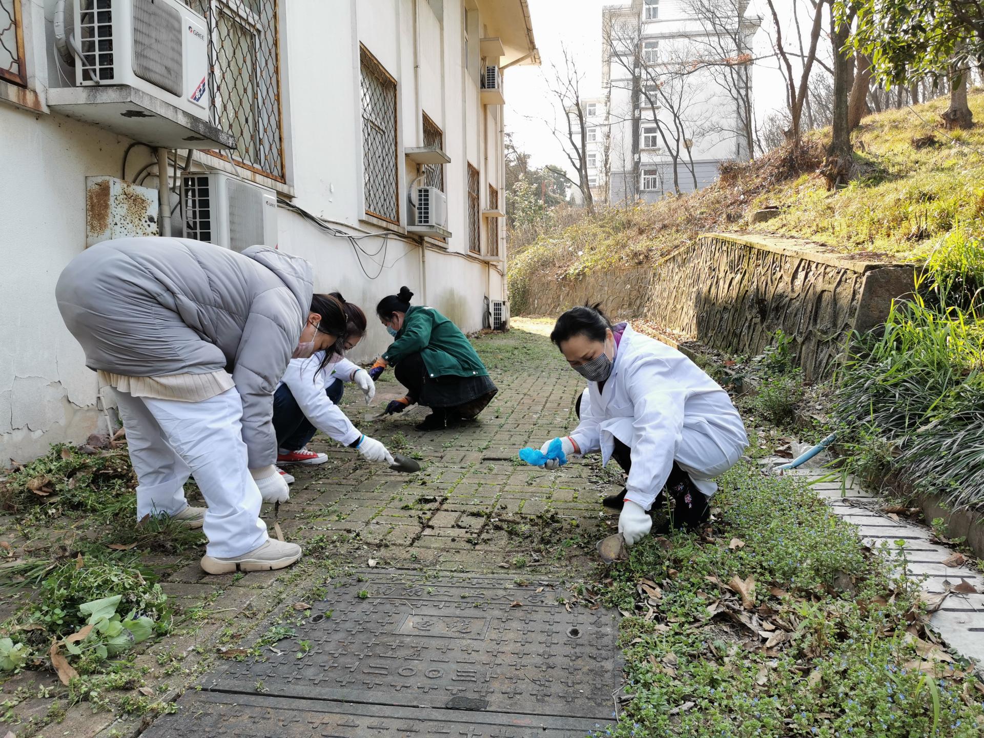 校医院人员在丁春卉副院长带领下,全面清理室内卫生,消除卫生死角,全面整治校医院周边环境卫生,除草、下水道疏通清淤、垃圾清理、环境消杀等活动。